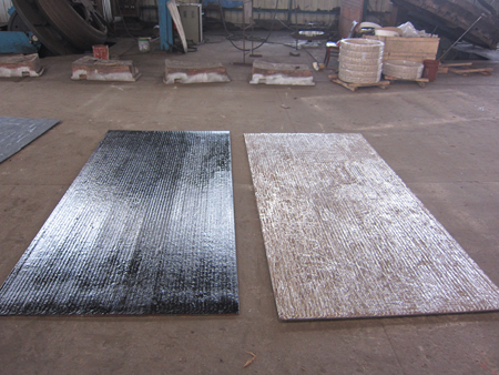 (2)復(fù)合耐磨鋼板安裝現(xiàn)場,由于硬度高切割時需要采用等離子設(shè)備切割